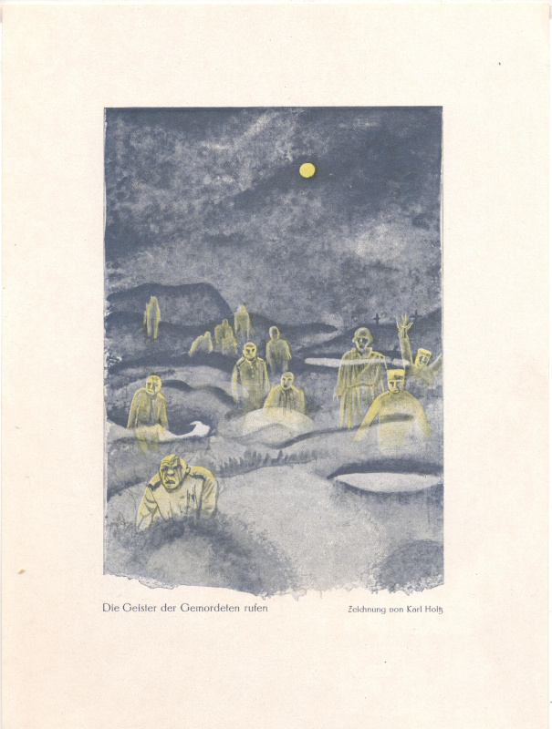 Karl Holtz: Die Geister der Gemordeten rufen (farbig).