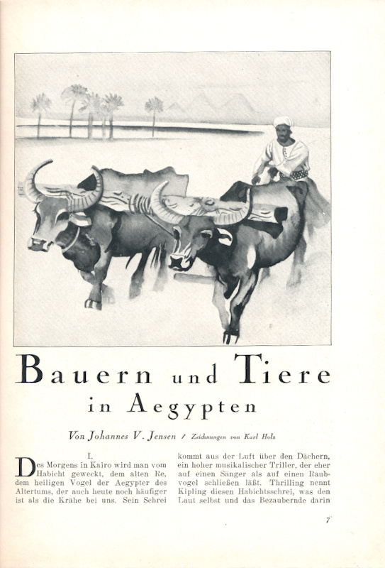 4 Zeichnungen zu Johannes V. Jensen: Bauern und Tiere in Aegypten