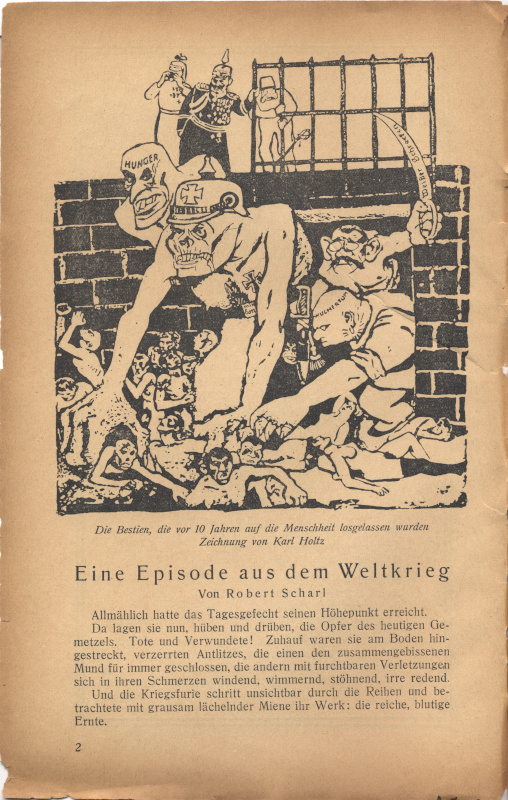 Seite 2: Die Bestien, die vor 10 Jahren auf die Menschheit losgelassen wurden. Zeichnung von Karl Holtz.