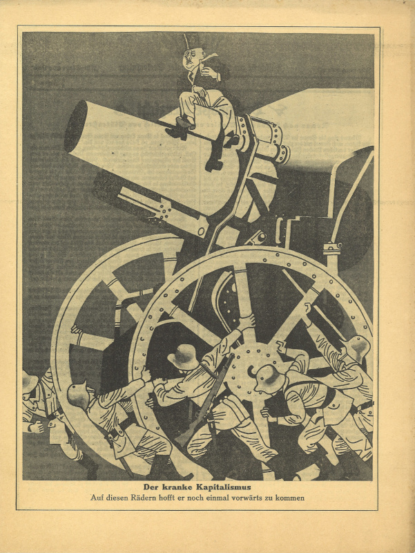 [Seite 5]: Der kranke Kapitalismus. Auf diesen Rädern hofft er noch einmal vorwärts zu kommen