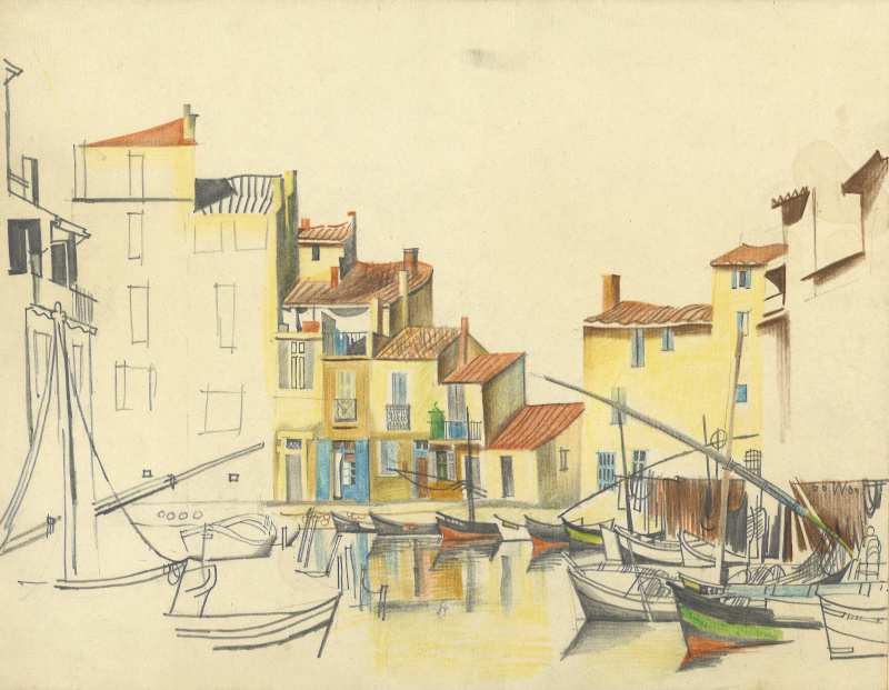 Teilkolorierte Bleistiftzeichnung