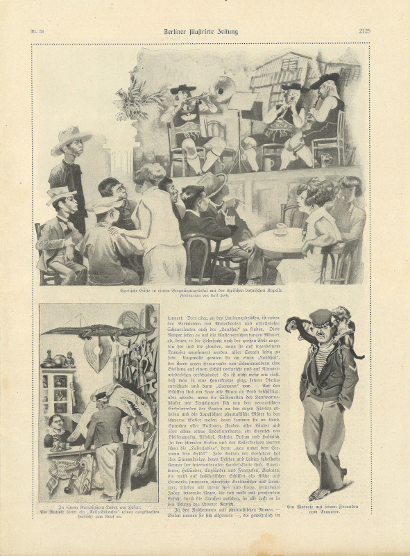 Exotische Gäste in einem Vergnügungslokal mit der typischen bayrischen Kapelle